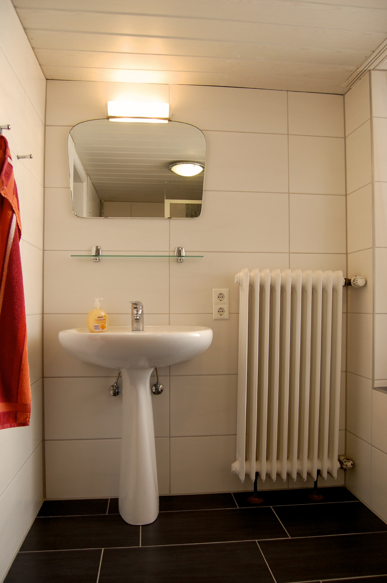 Das ebenfalls neue Bad ist ausgestattet mit einer schwellenlosen Nasszelle und Dusche, Waschbecken und Spiegel, einem Fön, Badezimmerschrank und Aufhängemöglichkeiten für Ihre Waschutensilien.